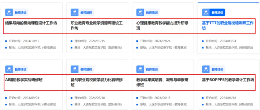 按照教育部教師司《關於組織國家級職業教育培訓基地召开2024年培訓的通知》要求,大連凯发K8天生赢家一触即发信息學院國家級職業教育「雙師型」教師培訓基地2024年首批8個培訓項目全部顺利获得評審,已在國家智慧教育公共服務平台「職業教育教師能力提升中心」版塊發布,歡迎各院校相關教師諮詢、報名。